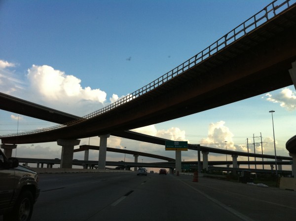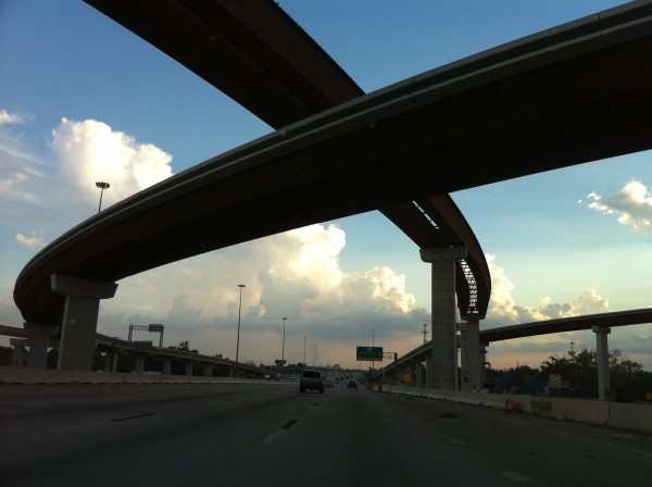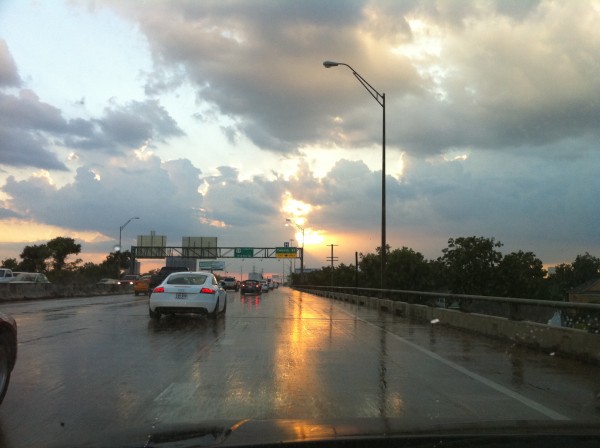 昨天下午第一次用iphone从车内拍片。车窗是脏的,但挡不住天空的光和城市的曲线: