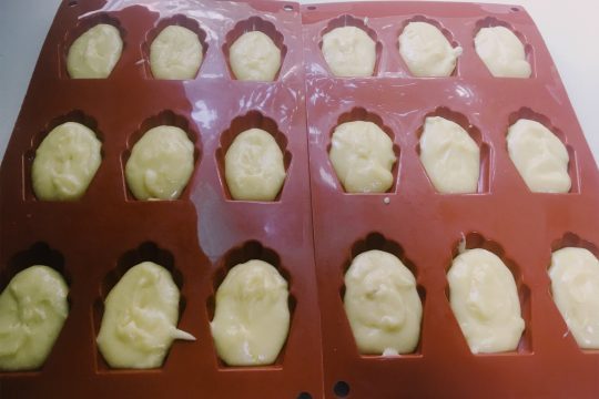 玛德琳对模具的不粘性能要求比较高,稍微粘掉一点皮就会影响外观。传统的金属模具需要抹一层固体黄油,撒上干面粉,再抖掉多余的面粉,才能起到比较好的不粘效果。用新型的硅胶模具就方便多了,不粘效果一流,绝对不会粘,推荐使用。
