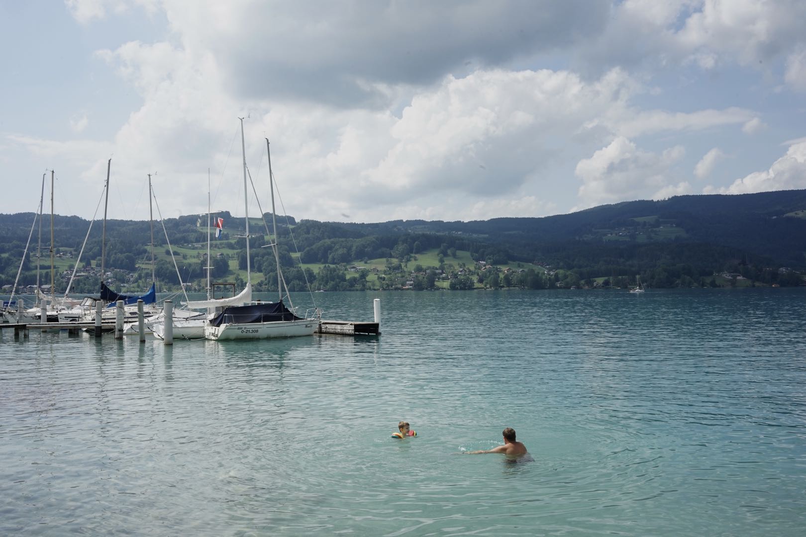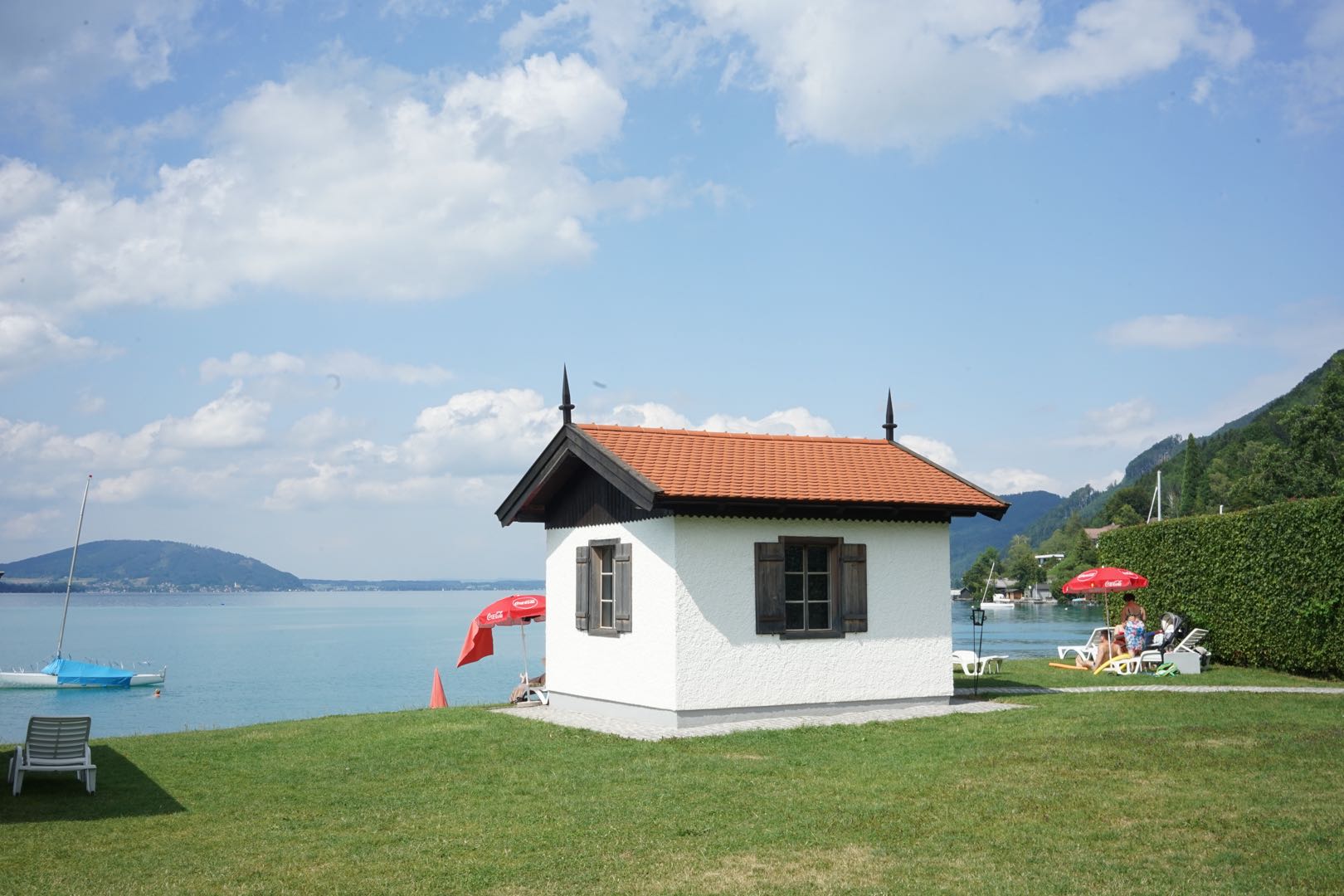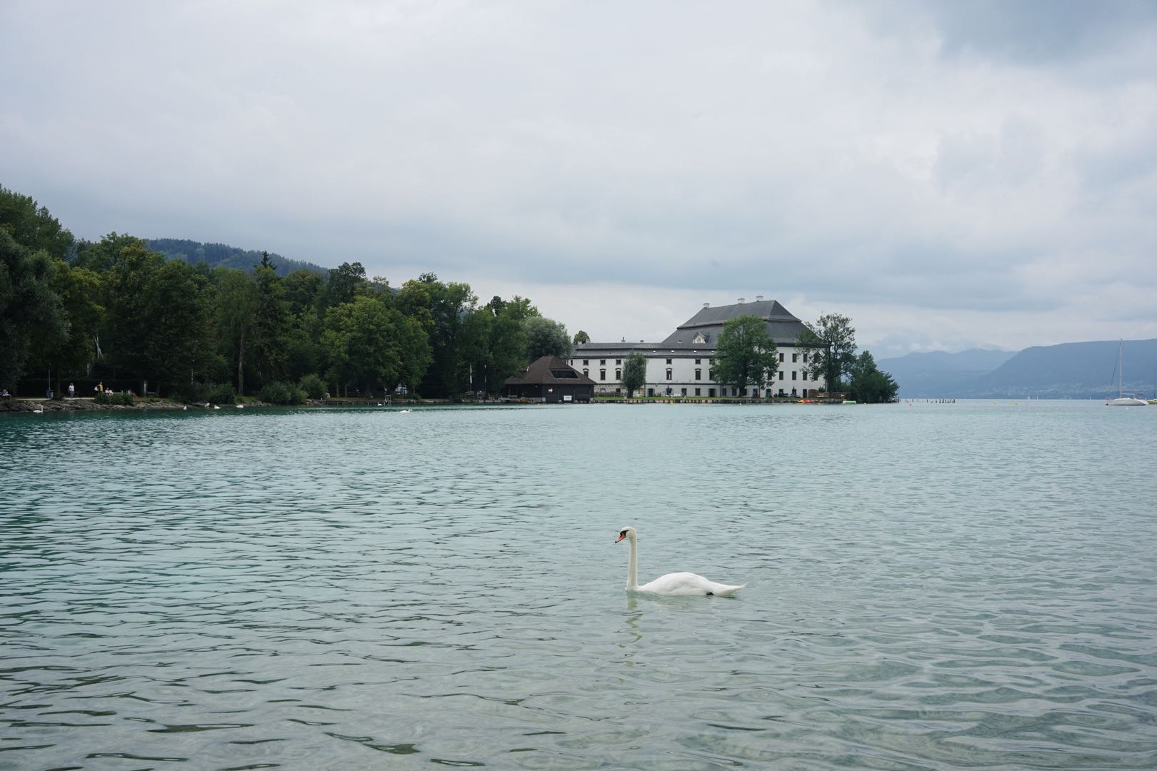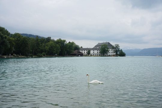 太好了,还有40多分钟,我才不坐等。这里就是阿特湖(Attersee) 的一端,按照国内的说法,已经进入景区。若是自驾或者骑自行车的话,从这里开始环湖是个不错的选择。很多人在湖边的草坪上一坐,看看天鹅,吃个热狗或冰淇淋,奥地利最惬意的夏天不过如此。