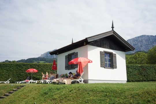 到达后,进入营地,对的,一个露营地。阿特湖夫亭格酒店的边上有个露营地指示牌,沿着入口往里面走,满眼被卸了轮胎的房车(不知道为何?)、帐篷、以及挂在晾衣绳上的洗晒衣物。没有拍太多照片,因为怕别人以为我偷窥。朝着湖的方向走直走,左边是一深色的屋子 – 冲凉和厕所,右边一栋白色小屋,那就是马勒的作曲小屋。