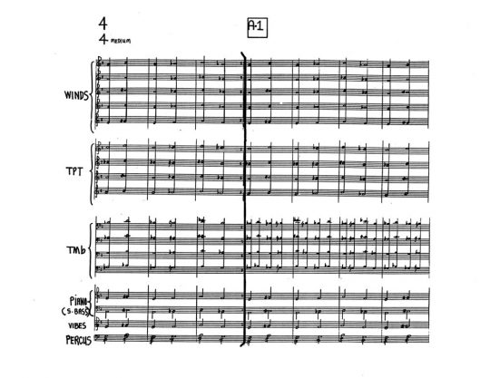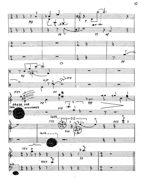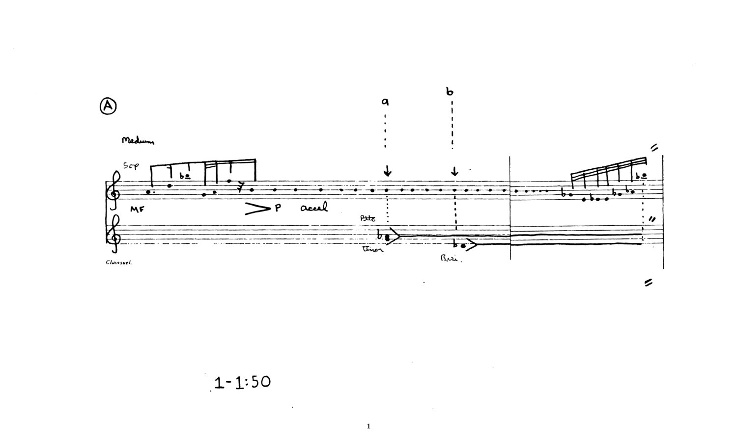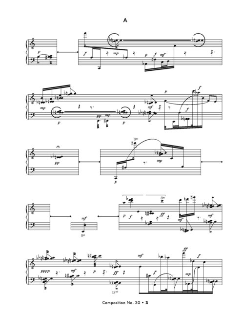 在Anthony Braxton这里,总谱不再能反映出乐曲的全貌,到非常后期的作品,它仅仅作为某种意涵的抽象概括(如在Echo Echo Mirror House Music中所表现出的那样)发挥着指导功能。音乐最微末的细部不再是预先被规定的了,作曲家无法借助理性技术精细化掌控整个生产过程,毋宁说这一结果是要被竭力避免的。它被化整为零,有序派发到所谓的“友好体验者”(注释5)手上自由创造,音乐就此转入不可测的非理性世界。