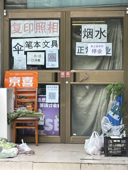 太不像小生意人,我们还笑得出来。她递给我手机,让我翻相册,中午拍摄了一些临街店面的停业告示。各式各样,有直接打出来通知内容的,还有进行了文字处理的。打印店贴出的进行了排版,上面一行写着“奉上级命令”,下面两个黑体“停业”占了几乎全部页面。而我们的停业告示是房产中介打印出来分送四邻的,几家一样的模板。