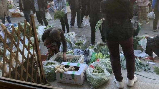已经分不清这是周几,一推开门邻居大哥正在泡茶,用“这可是好东西”的眼神示意我。领导来了,来尝尝。邻居大姐也在,这时间她一定是出来静静,逃避小学儿子的网课。白日的开端仍是热闹,日常核酸完毕,社区居民还能赶上早市地摊的最后光景,拎着菜再到社区门口的快递车旁拣选自己的包裹。今天还来了一辆载满了盆栽的三轮板车。推车人还来不及确定停车的合适位置,就围上了些分辨花草的观众。车未停稳,看门人过来,让离小区大门远一点。推车人再推起来,观众意犹未尽,跟上去询价。