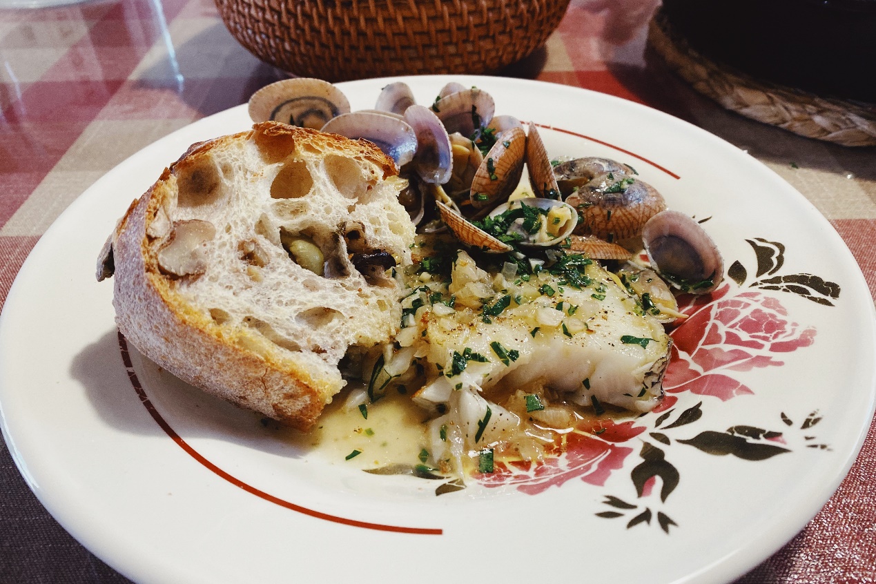 上次分享了一道白葡萄酒酒炖牛肉,说好之后再分享一些用白葡萄酒的菜,今天就来做一道白葡萄酒银鳕鱼烧蛤蜊,是我多年前从一个朋友那里学来的。虽然一直没有在餐厅或者网络视频里见过这样的做法,但它浓厚的地中海风格让我一下子就喜欢上了。而且,它做法非常简单,只要食材质量有保证,很难翻车,日常自己吃很舒服,家宴来一锅也很讨喜,相信哪家餐厅开发了这道菜一定大受欢迎。你也可以把银鳕鱼换成其他味道鲜美的鱼,全鱼或者切块的都可以。至于蛤蜊,各品种都可以用,我比较喜欢腰蛤(也叫油蛤),肉质肥厚,吃着过瘾。