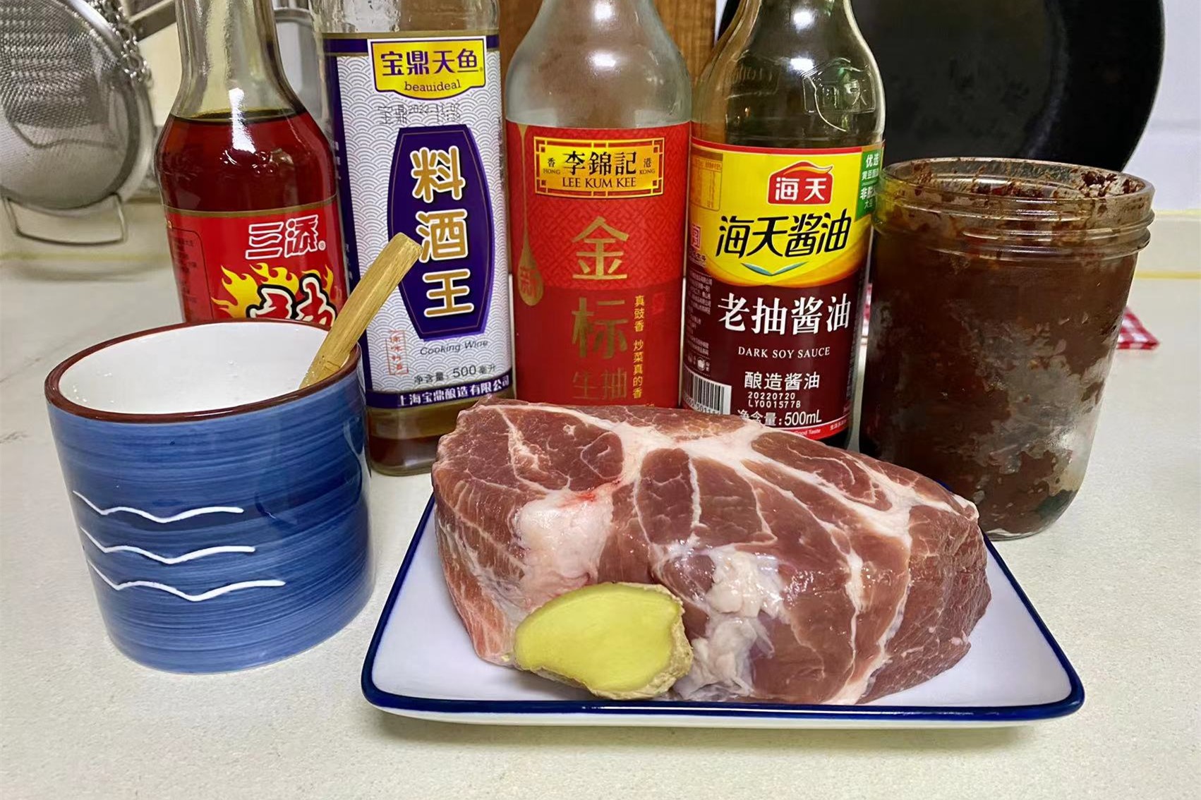 辣肉材料:猪瘦肉、姜片、白胡椒粉、郫县豆瓣、生抽、老抽、糖、植物油。