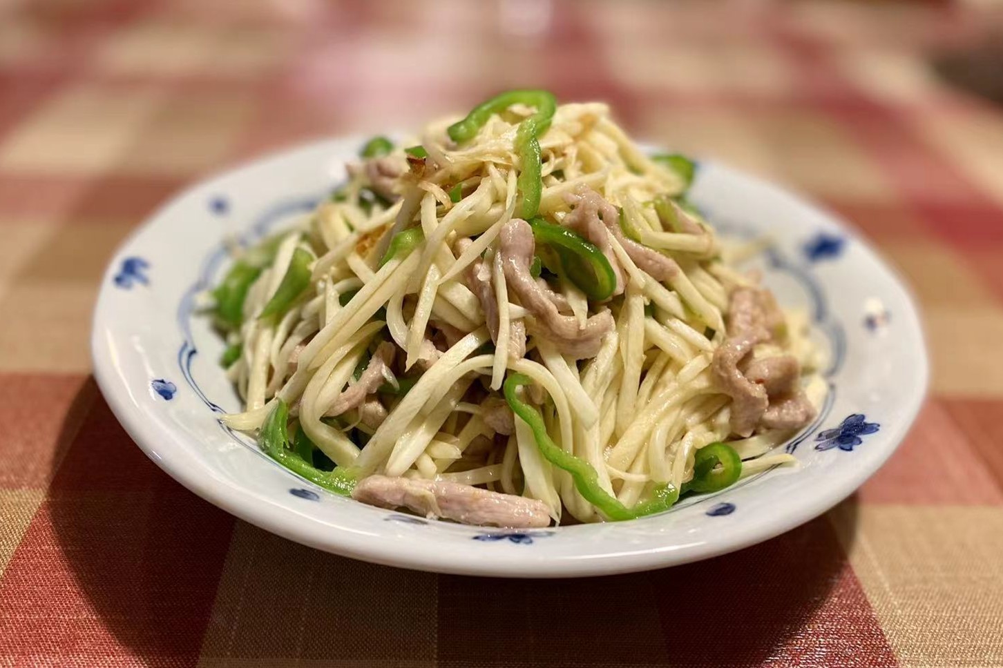 三丝指的是猪肉丝、茭白丝和青椒丝,不知道别的地区有没有这样的搭配,但在上海菜里算是非常经典了,是夏天很受欢迎的一道菜。