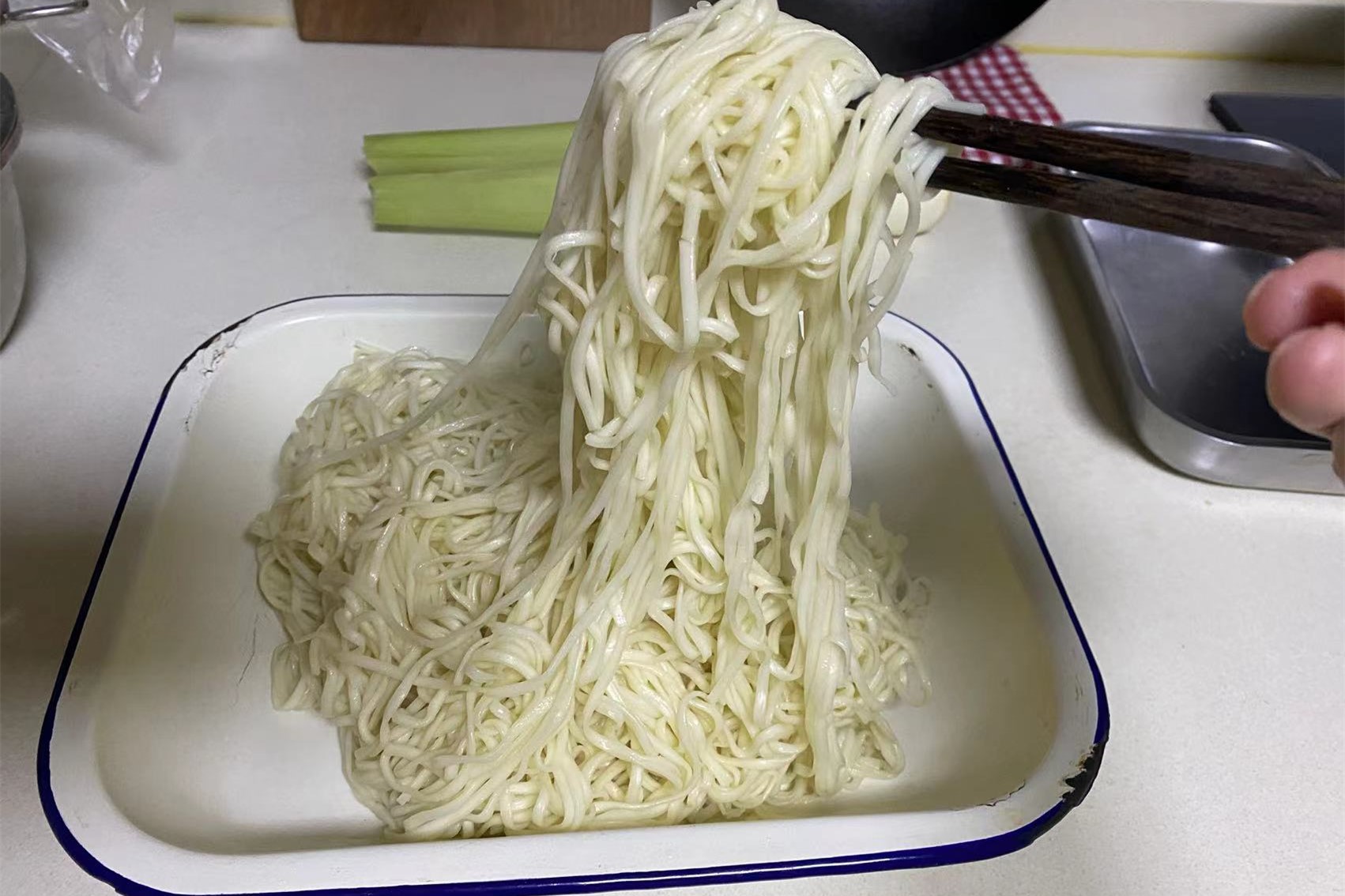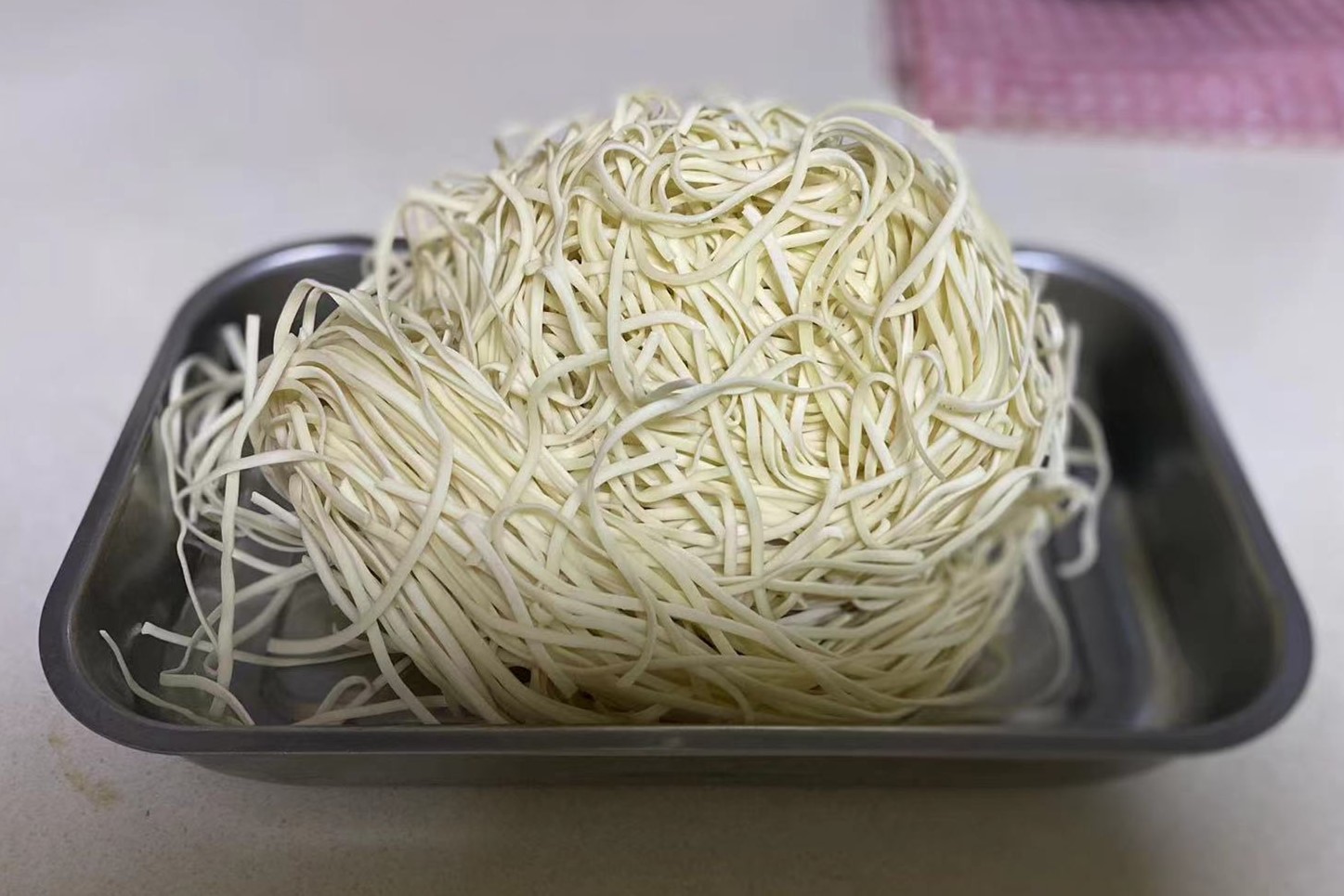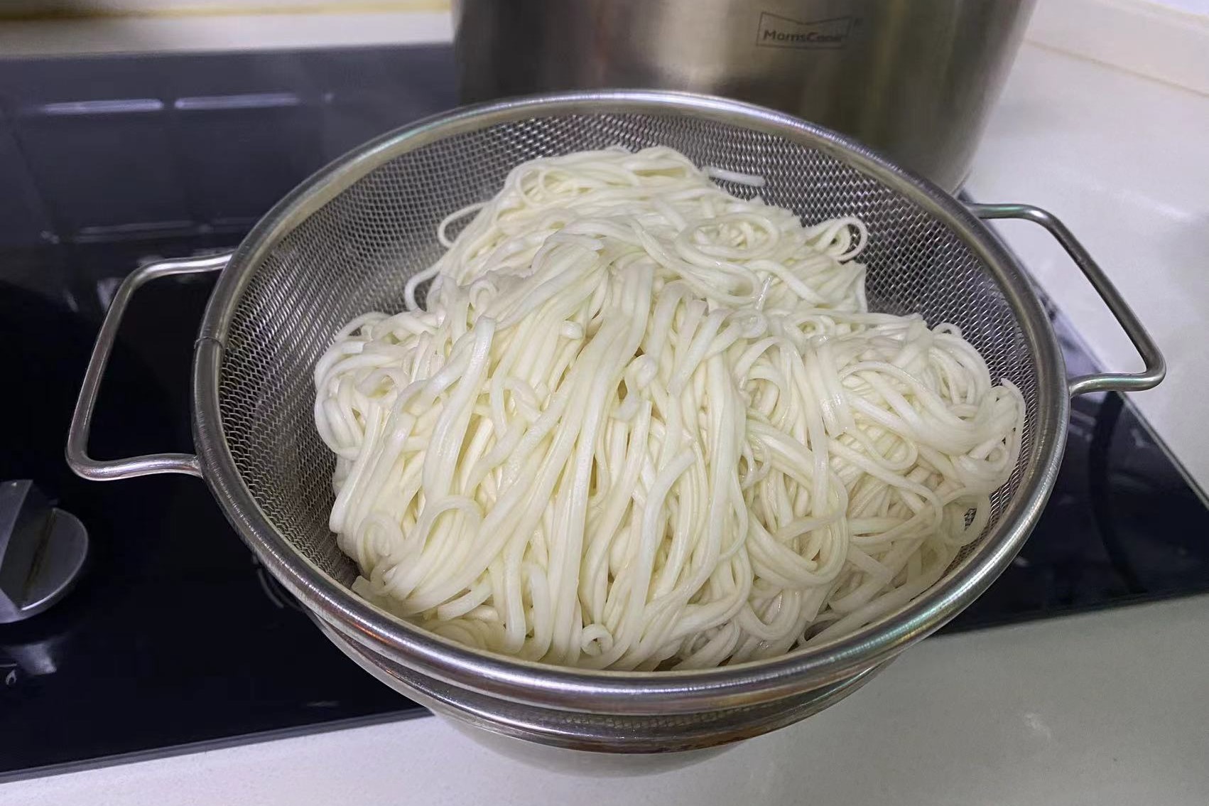 这是完全冷却的面条,干爽油润。这样面条部分就算完成了。
