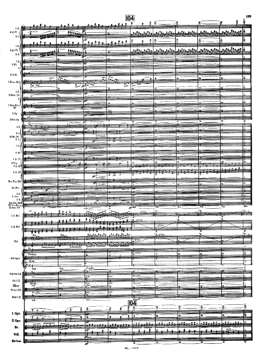 从技术上讲,后世作曲家所为,都是在扩充这个“起-承-转-合”,在规则限度内挖掘、实现它的各种可能性,并且不时稍稍越界,于是音乐写得越来越复杂,越来越庞大。到勋伯格入场时,几近无以复加,而他自己最庞大的那部《古雷之歌》(Gurre-Lieder,1901-1910)也极富象征意味地给音乐史的这一大历史时期划上了句号(当然,长尾不会断)。