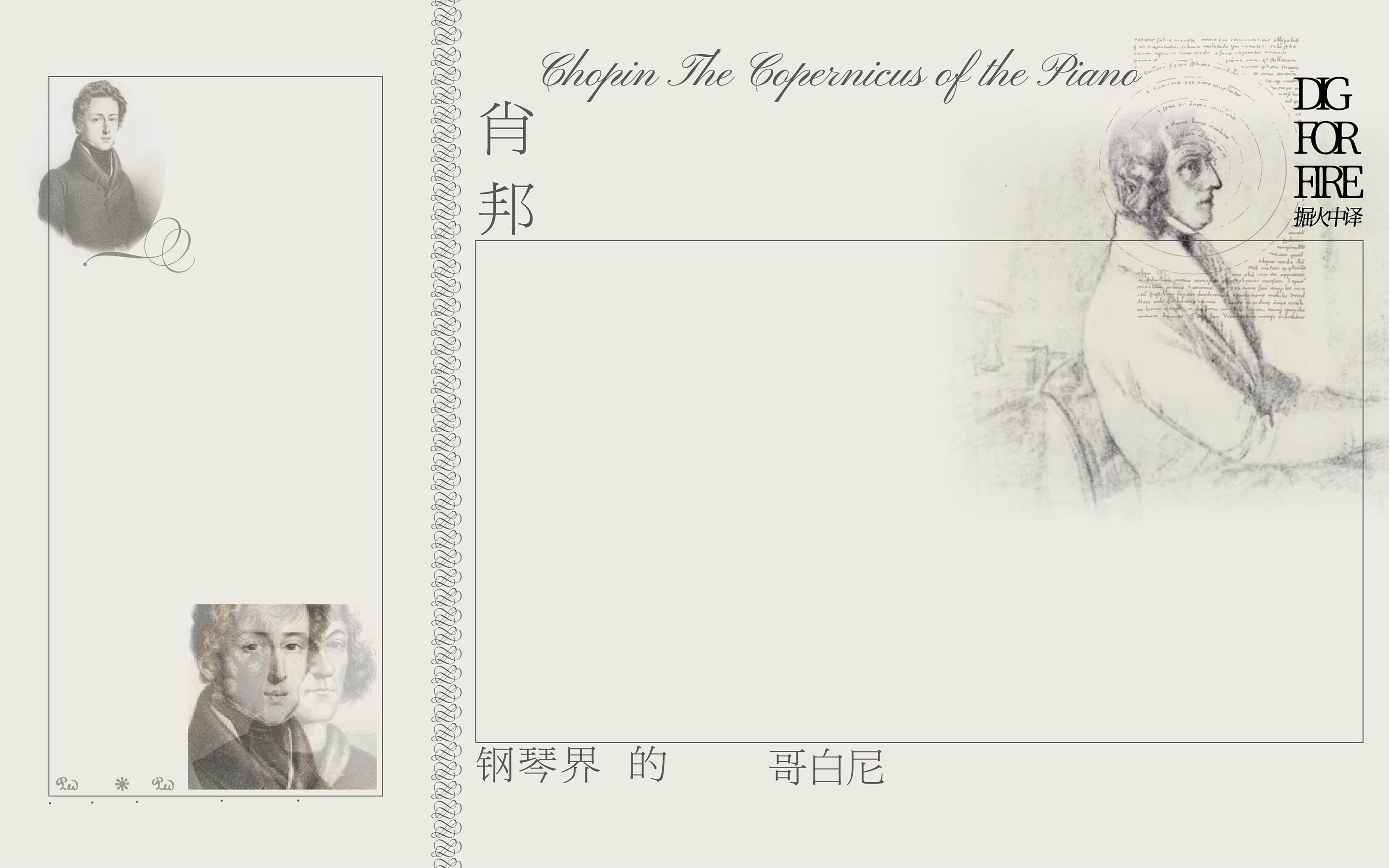 【译者前言】哥白尼是著名的波兰天文学家。他在肖邦诞生300年前为后继者开发了头顶苍穹,就像肖邦为后继者开发了钢琴键盘。在这场带曲例的讲座里,艾兰·沃克博士以这样一个比喻为主线,讲解了肖邦独特的钢琴技法,以及作曲时处理曲式的手法。讲座的部分文本源于艾兰·沃克新近出版的传记《肖邦:生平与时代》。讲座中的演奏曲例来自阿图尔·鲁宾斯坦、默里·佩拉希亚、毛里奇奥·波利尼、瓦莱丽・特里恩、谢尔盖·拉赫玛尼诺夫、白建宇、蜜拉·海丝。感谢马克・艾因利提供蜜拉·海丝的照片和谢尔盖·拉赫玛尼诺夫的录音。