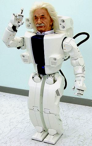 当然,对于恐惑谷是否存在一直有质疑之声,有些更是来自仿真机器人行业内部,其中一位是知名度极高的大卫汉森(David Hanson),他认为恐怖谷理论是“被人当成了真科学的伪科学”。汉森因2005年将已故科幻作家飞利浦迪克(Philip K Dick)“复活”而爆得大名。汉森依据飞利浦迪克的身体外观制造了一个可以自动对话的仿真机器人,“迪克对话机”依靠眼部摄像机和语音识别及合成技术,以迪克生平及作品等人格化的信息为数据库,这个仿真机器人可以和陌生人以较为自然方式对话。“迪克对话机”之后,汉森又将爱因斯坦进行了复制,做了台“爱因斯坦行走机”(Albert Einstein Hubo),显然他的名人复活计划要比日本仿真机器人制造界的同行讨巧很多,这从他的身份——汉森机器人公司(Hanson robotics)的CEO——上不难理解。“爱因斯坦行走机”的成果集中体现在表情丰富度上,汉森把这位著名的社交障碍名人转变为“性感的”表情帝,在Youtube上标题为“Sexy robot video”的视频中你将会看到这个赝品爱因斯坦的面部表情是如何得丰富,一旦装上机械臂搔首弄姿该不会是难事儿。视频下方紧跟着的两条评论将仿真爱因斯坦定位于恐惑谷之中,一则是“Thanks for the nightmares!”,另一则是“Can you have sex with it?”