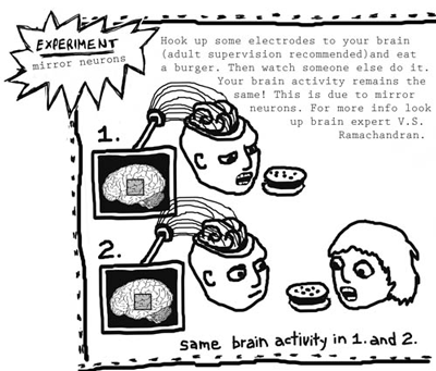 读到此处,你也许认为其实詹池的看法较易接受,而弗洛伊德的解释太过牵强。现代神经科学已有的数据可部分支持詹池的推测。如果去留心观察我们自己对他人的感知方式,不难发现这种感知是以整体模式进行的,所谓整体即外观,表情,动作等的整合信息;环境中的无生命物体,如机械/电子装置,同样被作为整体感知,比如,当你见到有飞机在天上划过,你不会想用弹弓把它打下来,因为你看到的飞机外观同时也将飞行高度、材质和速度等其他属性作为整体感知。在我们的经验和印象中,整体中的局部特征也对应与整体,比如,我们在夜里行走于马路上看到后面有逐渐变长的阴影投来,并有节奏的晃动,我们自然会判断出后方有人走来,而不是一辆汽车跟在后面。绝大多数情况下,我们所感知到的运动动力学与其主体外观所暗示的其应有的运动方式相一致。人类知觉的主要门户是视觉系统(85%的环境信息从视觉系统进入大脑),视觉系统与大脑诸多的功能区域(脑中功能相关的神经细胞集群构成行使不同功能的单位或集团,有点类似大型城市不同的区域对于不同的功能,如商务区、科教区或行政区等)相连,其中一个叫做运动感知系统[(Action Perception System,APS。此系统的主要结构包括外侧颞叶(Lateral Temporal Cortex),下额叶/腹侧前运动(Inferior Frontal/Ventral Premotor Cortex)以及前运动皮质腹侧顶叶内前部皮质(Anterior Intraparietal Cortex)],APS系统中包含有大量镜像神经元(Mirror-neuron),它们是一群在我们实际执行动作以及仅观看同一动作这两种不同状况下都会活跃起来的神经细胞。凭借它们,个体可以在不做出实际动作而仅作为观察者的情况下,预测及理解他人的行为,这是社会学习和信息交流的基础,它们的存在对于社会性动物来说具有生死攸关的重要性(以社交不能和兴趣倾向于非生命物体为特点的自闭症,其病因也许和镜像神经元功能有关)。人类观察、预测及理解环境这一动态过程需要APS系统才能完成,即外部环境整体信息通过视觉系统信息输入,我们根据以往的经验作出预测,外界信息不断输入,和已有的预测进行比较,若匹配则获至理解,不匹配则有困惑焦虑甚至恐惧产生。