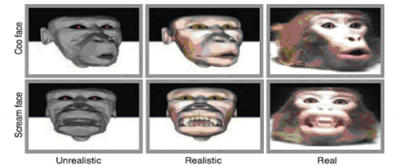 现在回过头来,在来看弗洛伊德那些荒谬的恐惑成因论,其荒谬感的原因之一也许是他强行将失明和阉割情结联系起来。在弗洛伊德的理论系统里,“阉割”一词和他所使用其他的“术语”一样,是个非常宽泛的概念,“阉割”其实是某种起自于强权威胁的妄想,它不仅让性器期儿童感到焦虑,在更深层次上也与生物的生物学本质即“生殖”相衔接,生殖是弗洛伊德理论构架的基石生本能的重要面向。这样看来,詹池的理论——着眼于个体当下的知觉和意识来解释恐惑感的产生——是对的,弗洛伊德的观点——结构性的将个体幼年时期形成的认知情绪模式与成年后的境遇联系起来,并放在人类这个更大的背景加以抽象化,即恐惑感是个体反复受到不同表现形式的生殖威胁而产生的——不是全无道理。的确,以“繁殖”为中心话题的演化心理学确实支持弗洛伊德的观点。从配偶选择的心理学机制看,灵长类(也包括人类)会意识的或本能的排斥那些在外观上暗示低生育率、低健康度或免疫系统工作不良(有时会表现在外观上,如皮疹和大面积感染)的个体作为配偶,这种识别的基础无疑来自面部和躯体的视觉特征,而表观常常对内部机能运行情况有较好的预测性。从种族延续角度看,人类(其他具有社会化性的哺乳动物也是一样)有“病态厌恶”(Pathogen Avoidance)的本能,个体会主动回避能引起厌恶反应的潜在“致病源”,对他们的“孤立”有助于整个族群繁衍下去。视觉和生殖是由联系的,我们靠视觉去选择配偶进行繁殖,若失明则一方面造其他人的无意识排斥,而自己也丧失了选择配偶的主要手段,在演化心理学中,失明意味着成功繁殖的机会大减。因此,感官上的不正常,如仿真机器人在视觉上——我们前面说过仿真机器人其逼真度一旦落入某一范围,则其和人类外观上的细微差别会变得非常显眼和突兀——与尸体及有明显疾病外观的个体一样,都会引起观者的警觉和反感。这种现象在猕猴(恒河猴)身上也能观察到。普林斯顿的阿西夫葛赞法(Asif Ghazanfar)教授为自己的实验猴制作了3种逼真度(不逼真,逼真和极度逼真)的合成猴影像,实验猴通过“扩张实境技术”(Avatar,一种实体操纵虚拟对象的互动技术)与这些合成猴影像进行互动,目的是观察那种合成影像是猴子们喜闻乐见的。猴子们坐在屏幕前,观看随机出现的影像,每一影像持续2秒。葛赞法教授通过追踪猴子的眼球运动发现,所有实验猴盯视逼真合成影像的时间最短,显然它们比较与喜欢同不逼真及极度逼真的虚拟猴进行互动。葛赞发教授的发现,使恐惑谷现象从人类倒序到演化上更古老的猕猴有了实证支持。从生物演化的角度,弗洛伊德的恐惑成因论不仅不荒谬还显得很深刻。
