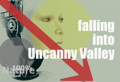 看起来CG行业碰到的仅是技术问题,但实际上并不如此简单。毕竟三维图像所呈现的要比二维更逼真,但逼真度和接受度(感观)之间并非线性关系,这是以真人为原型追求逼真再现相关行业都要面对的问题。在仿真机器人领域也是如此。日本现代仿真机器人教父级人物森政弘(Masahiro Mori,1927)说过,造一个仿真机器人,如果它与人类有50%的相似度,那不错;若仿真度在60%的话,也不错;进一步,70%,这样的效果最好;如果还要更逼真,相似度达到71%,那将是一个灾难;若技术够牛的话,相似度升到99%,这样的仿真机器人大家依旧喜欢。人类对机器人的情感并非随相似度直线上升,当相似性到达一定程度后,人类会突然产生厌恶感,在这一相似度之后,机器人与人类的点滴差别都会对人类心理产生巨大的负面影响,以至于它们看非常僵硬、恐怖。此后,当相似度再次提升,人类的情感又逐渐转向正面,此时仿真机器人与人类之间的移情作用类同于人类间的移情作用。Mori称这种在一定区域内相似度提高却又引起厌恶观感的现象为“恐惑谷”。