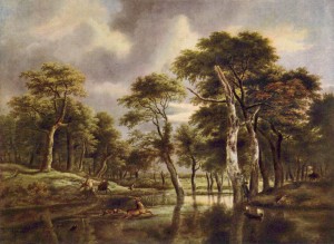 只不过回头想想巴赞的艺术史书籍,倘若福尔可以对应到德勒兹,那巴赞可以对应到电影史学大家萨都尔 (Georges Sadoul)吧?或许真的可以,尤其在阅读萨都尔那本浓缩过的《世界电影史》(Histoire du Cinéma Mondial)时的感觉更为明显。在这本书中,他得将他那分成好几册的电影史书写架构浓缩在一本不到650页的书中(10),压缩肯定是在所难免。谢尔曼‧巴赞的情况也类似。当一般人在论及17世界的荷兰绘画时,很可能将那三五位知名的大师简述过,甚至主要着墨于一两个其余就将名字带到即可的时候,巴赞却不厌其烦地至少写到或提到超过30个人名。这使得他在罗列那些曾一时占据过荷兰绘画主流的风景画派主要艺术家的时候,也只能这样综述:「罗伊斯达尔(Salomon van Ruisdael)自果衍(Jan van Goyen)处习得仅以水及天空表现风景画的记法。罗伊斯达尔的外甥雅各布‧范‧罗伊斯达尔(Jacob van Ruisdael)更将上述技法加以发挥,来表现广大天空下平坦相也的雄厚,有着无垠感及对孤寂的畏惧。他因此成了哈伦与阿姆斯特丹风景画家模仿的对象。阿姆斯特丹画家霍伯玛(Meindert Hobbema)打破罗伊斯达尔的诗意,代之以沉重的写实风格,尼尔(Aert van Neer)则擅长夜景。…」(11)在这同一段里,后面还包含带有九个人长的名单,所以在此就略去不引了,这么一来,巴赞当然会像很多人一样,将某些次要人物一笔带过,似乎唯有在论及这些艺术倾向的美学共同点时,他才更舍得花篇幅来描述:「…刻意将室内空间处理得仿似一处神秘之地、个人心灵的庇护所,在他们画中的人们,似乎都来自一个有着精致文明的社会,沈潜于音乐或轻声交谈,自然地流露出一股安静的气氛,似乎自觉到人类境遇的悲惨。而我们必须注意的是,在这些室内画景的背后,这些细心敏感的画家其实是想借着构图与光线的巧妙安排,来让观者专注于感觉到人类的灵魂。」(12)很美,不是吗?与其浏览那些在我们脑海里留不住印子的名字,还不如咀嚼这类经看的文字。这似乎体现了这位史学家的两面性,谁知道他是不是受到个性的左右?